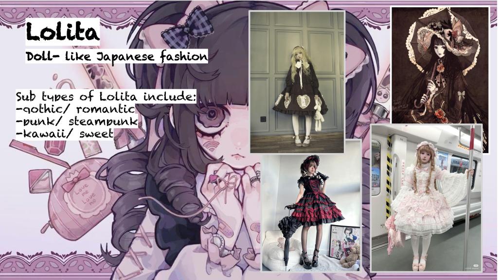- Lolita – With styles ranging from Gothic and Punk to Sweet and Romantic, Lolita fashion creates a doll-like, hyper-aesthetic world outside patriarchal norms.