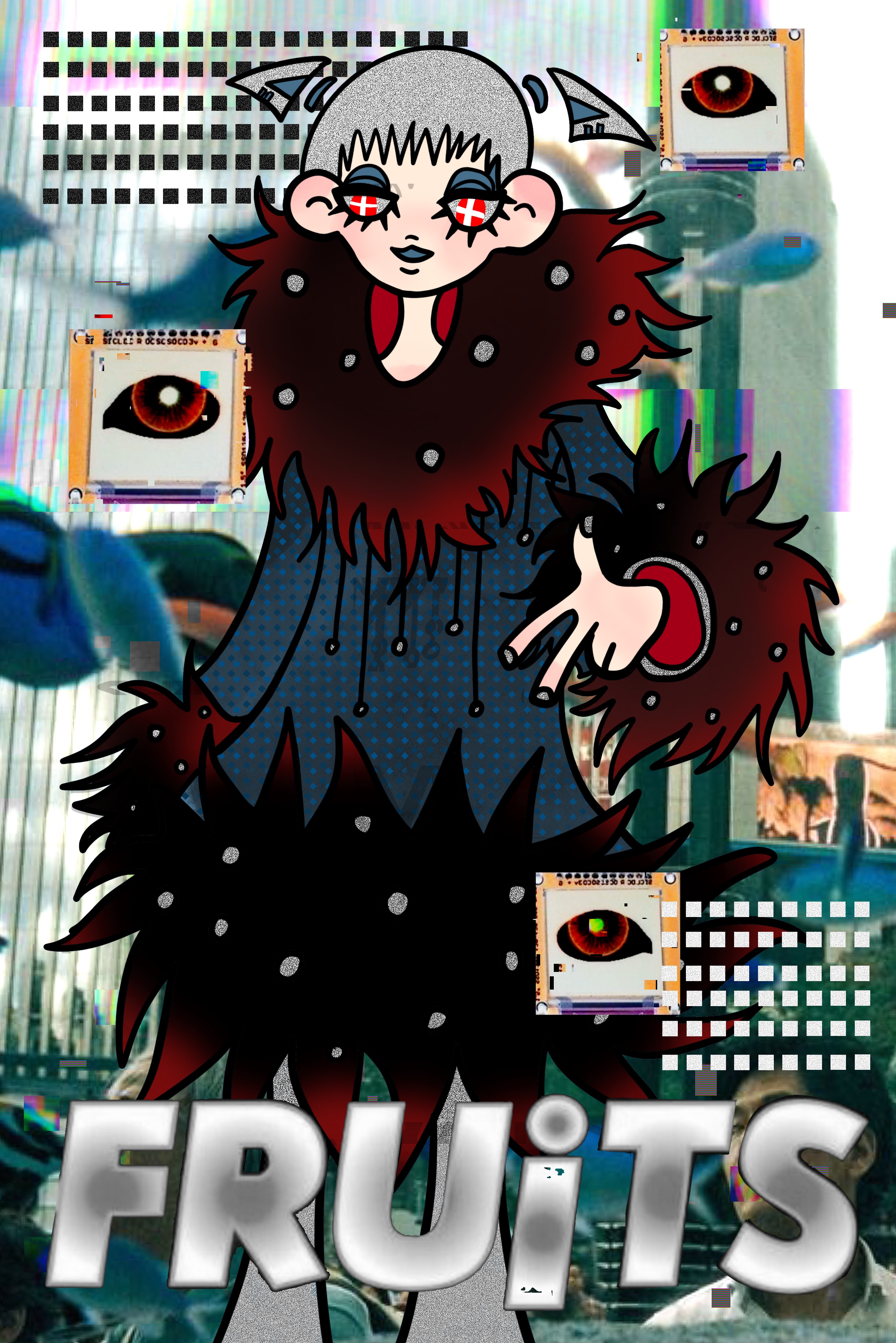 Above: Our digital painting depicts the cover of the future Harajuku magazine “Fruits”